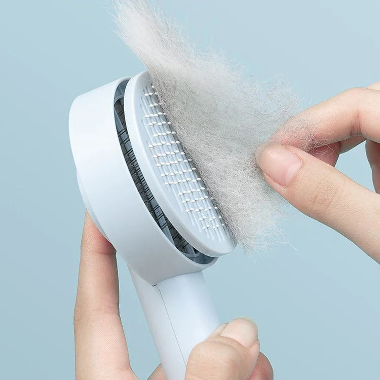 • Retractable bristles with the push of a button for easy fur removal.
